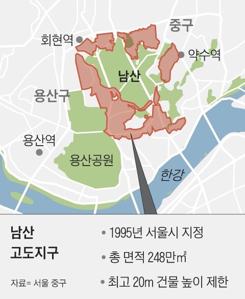 남산 고도제한 완화… “고층 건물로 재개발” “경관 해치면 안돼”